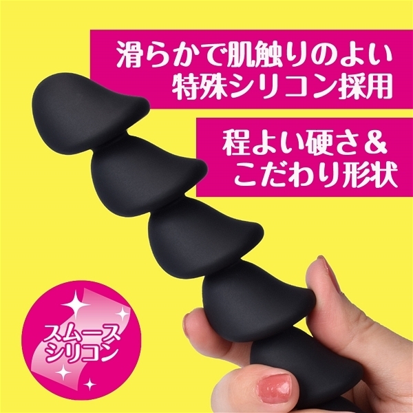 6連続の挿入快感が楽しめるユニセックススティック登場。肌触り滑らかなスムースマットシリコン素材採用の程良い硬さのこだわりの形状。ポコポコと出し入れ時に挿入快感を連続で擬似体験出来ます。持ち手部分にはしっかり太めの二指型リングを採用、使用感を高めています。サイズ感・柔らかさ・形状、全てにこだわった特殊スタイルスティック。
