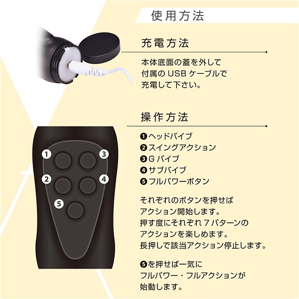 ヘッドにターボモーター・G位置にハイスピードマイクロモーター、さらにサブバイブにもハイトルクモーターを搭載した3バイブ+スイングアクションが楽しめるプレジャーグッズ。振動とスイングにそれぞれに7パターンアクション。充電式リチウムイオンバッテリー搭載で4つのモーターを力強くアクション可能。程よい柔らかさと滑らかな肌触りが特徴のヒューマングレードプレミアムスキン素材採用。品質に拘った<FACT>ブランド第一弾バイブレーター。●カラー:ピンク