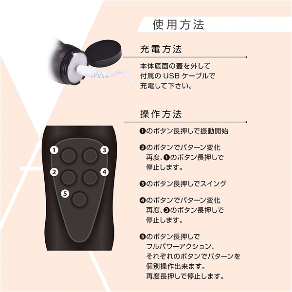 先端に非常に強力で重い振動を生み出すビッグモーターを搭載したデンマライクバイブレーター。もちろんスイングアクションも楽しめるプレジャーグッズ。電圧110Vのハイパワーリチウムイオンバッテリー搭載。それぞれ3パターンの振動&スイングアクション。程よい柔らかさと滑らかな肌触りが特徴のヒューマングレードプレミアムスキン素材採用。品質に拘った<FACT>ブランドの特殊大型デンマバイブレーター。●カラー:ピンク