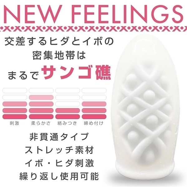 コンパクトでも実用的で繰り返し使えるミニホール。網目状に交差するヒダとイボの密集構造。コンパクトで持ち歩きに便利なミニホール。CORALは網目状のヒダの間に大きなイボが組み込まれたサンゴのような形状。メリハリの効いた大きな凸凹が、見た目以上にしっかりとした刺激を生み出します。さらに耐久性も高く、繰り返し使用可能。容器はホールを立てられるタイプなので、洗ってからの乾燥や保管にも便利です。