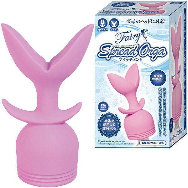 膣内で刺激が広がる開口式!フェアリーミニなどの45mmヘッド径に対応した電マアタッチメント「フェアリー スプレッドオルガ アタッチメント ダブル」。先端を閉じて挿入すると、膣内でパカっと広がり膣壁を刺激!アタッチメントの先端まで振動が伝わり、今までにない快感を味わえます。モニターテストでも大絶賛!医療用シリコンを100%使用した安心素材の膣内イキアタッチメント。挿入せずにそのまま当てて使っても絶品!新たな快感スポットへの攻撃や膣圧と感度のトレーニング、アナル拡張にもぜひどうぞ。※挿入する際は先端を閉じてご使用ください。