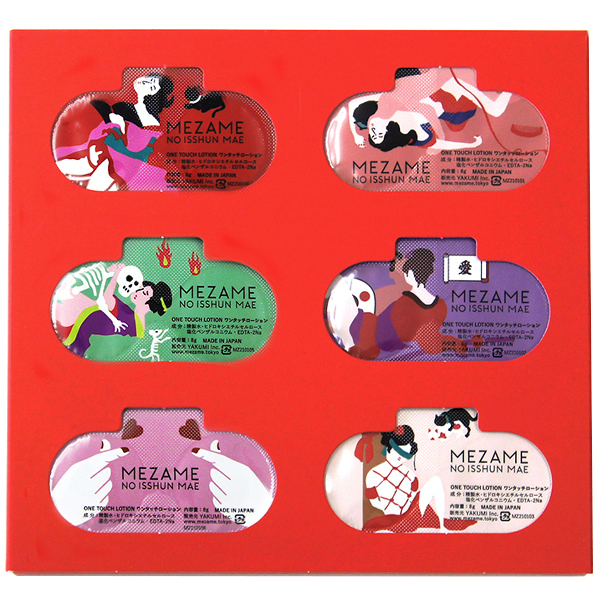 ポーション型のワンタッチローションです。 春画を模したラベルのデザイン。パキッと片手で開封できるので従来のボトル型の蓋の開け閉めに手間取ったり、ボトルに液が垂れてしまったして、興奮が冷める心配はありません。使い切りタイプなので衛生的にも安心。 あらゆる性別に、潤いプラス、ピンポイントに使えて見た目もキャッチー。 それ以上にコミュニケーションツールとして友人同士のギフトや、お土産、夜の会話のお供に。エロから始まる正統派コミュニケーション。6個セット(6種デザイン)