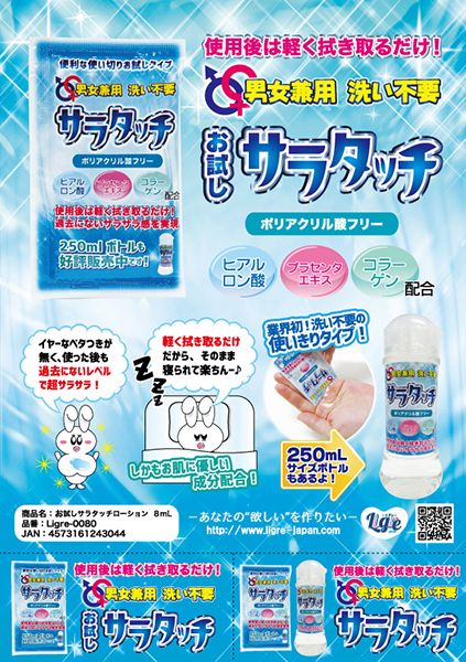 HOME > ローション > ローション・潤滑ゼリー > 男女兼用 洗い不要!サラタッチ 使い切り8ml
