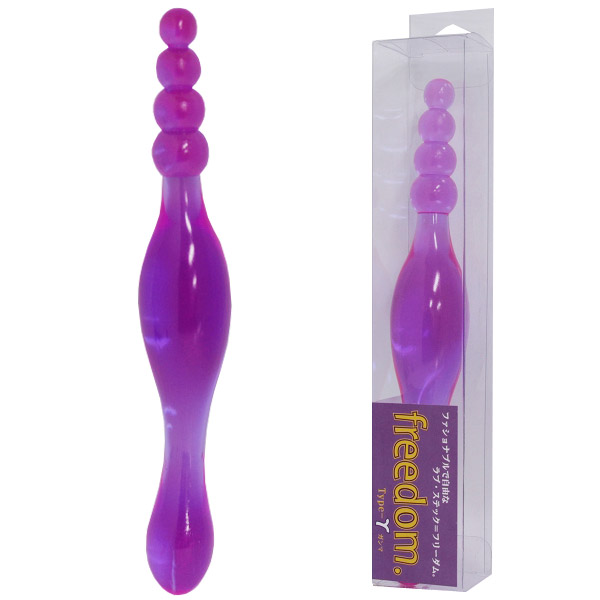 超人気!初心者さんにも安心な、ソフト素材のスティックディルド。クリアパープルの「ガンマ(γ)」は、両端で形状が異なり、少し太目の丸みのある側と、4段の団子を配置した側の2種類。アソコはもちろん、アナルにも使える優れものです。つるりと入る柔らか素材なので、初心者の方にも安心してお使い頂けます。機能性と見た目の美しさを兼ね備えた、人気のディルドです。