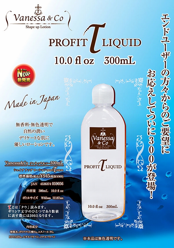 無香料、無色透明で自然の潤い!デリケートな肌にも優しいローション(300ml)。スタイリッシュなアダルトライフを演出する、ブランドローションのヴァネッサ&コーシリーズに、300mlサイズが仲間入り。クオリティにこだわって辿り着いたのは、シンプルな無色・無味・無臭タイプ!場面を選ばずいつでも使える、スタンダードなローションです。