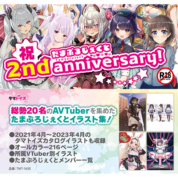 タマトイズの専属Vtuberたちのイラストを収録した、充実のボリュームでファン必携のイラスト集が登場!2021年4月からの総勢20名分のカタログやパッケージイラスト、各キャラクターの三面図なども掲載されています。AVTuberを集めたオールカラーのイラスト集で、1冊あれば大人の好奇心もムクムク勃ち上がること間違いなしです♪AVTuberを集めたたまぷろじぇくとイラスト集、オールカラー216ページ。●メーカー型番:TMT-1650