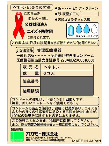 HOME > コンドーム > ブランド > オカモト ベネトン500−X