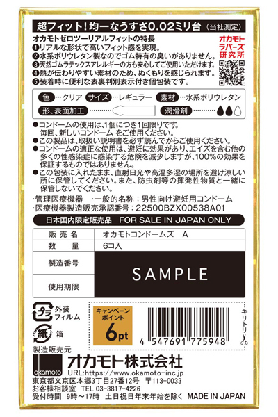 オカモトゼロツー うすさ均一0.02 (リアルフィット) 6個入り
