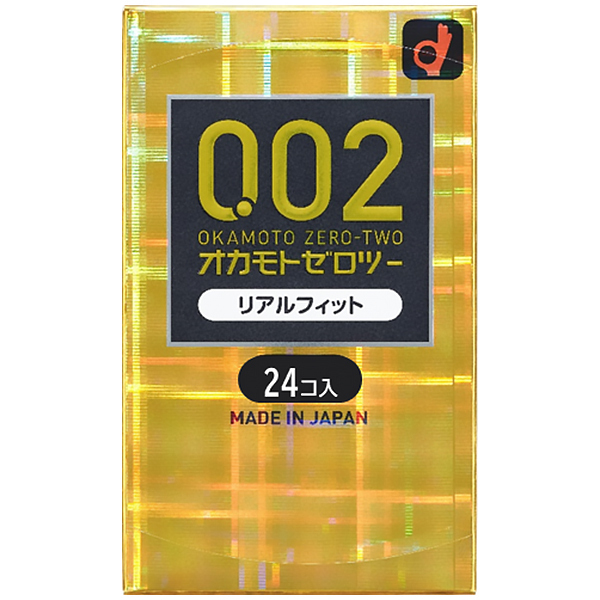 〜「オカモトゼロツー」シリーズ〜●オカモトゼロツーリアルフィット 24P●オカモトのコンドーム0.02(ゼロツー)は根元から先端まで均一な薄さを実現。均一なうすさ0.02ミリ台。素肌が透けて見えるほどの透明感。熱が伝わりやすい素材のため、体温でやわらかくフィットします。環境を配慮した水系ポリウレタンを使用。ゴム特有の臭いが全くありません。ラテックスアレルギーの方も安心してご使用いただけます。装着時に便利な裏表判別機能付きです。※商品の外装フィルム(透明フィルム)については、包装されている商品と包装されていない商品がございます。予めご了承下さい。
