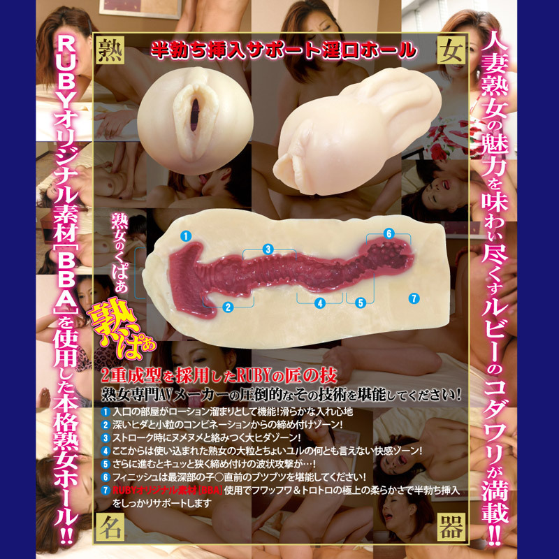 熟女専門だからできるワザ!RUBYが放つ「藤木未央」の至高オナホール。●RUBYオリジナル素材「BBA」使用●女優自らプロデュースした至高作●色白モチ肌×熟した内部の2重成型●半勃起でも受け入れる淫乱入り口●溝ヒダ&ツブツブの締め付け膣道●経験豊富なちょいユル中盤ゾーン●子宮手前のコリコリ最奥で昇天。何から何まで知り尽くしている専門メーカーだからこそ作り得た淫乱美熟女の極上名器!半勃起でも飲み込んでしまう淫乱さとフワトロな素材で、マニアではなくても虜になってしまいそうなオナホールです。