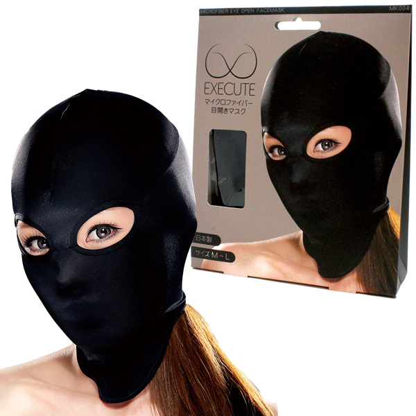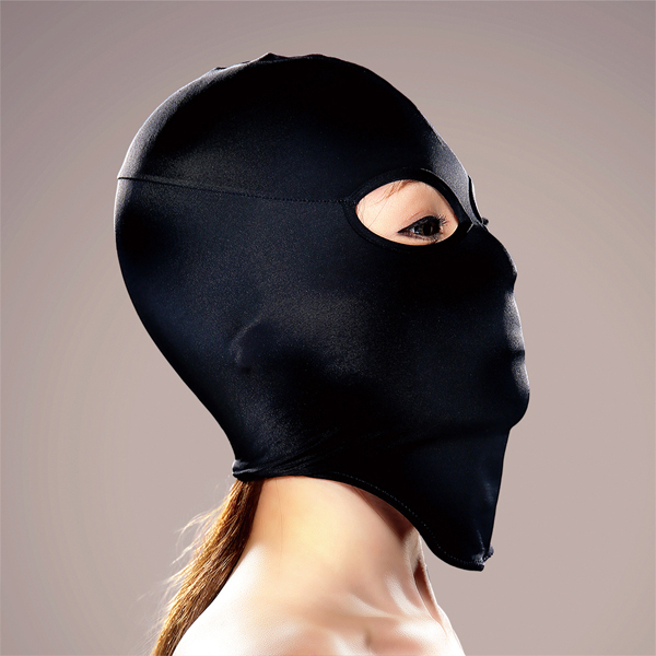 日本国内の工場で縫製され、国産のマイクロファイバー生地を使用したストレッチ素材の目開きタイプの全頭マスク。羞恥心を掻き立てるフェティッシュなプレイのマスクです。