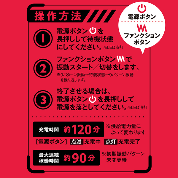 敏感ゾーンを包み込んで超集中刺激!!即イキ注意!!肌ざわり滑らかな高品質シリコン仕様&高い伸縮性でいろんなサイズを包み込むようにフィット♪敏感な先端をラップ内部の小粒イボが超破壊的な振動で囲い責めするローターです!ラップをめくって焦らし責め仕様!小粒イボがサワサワと敏感に刺激!チクニ―にもオススメ♪充電時間約120分、最大連続稼働時間約90分(初期振動パターン未変更時)。IPX7等級、静音設計<40dB、9パターン振動