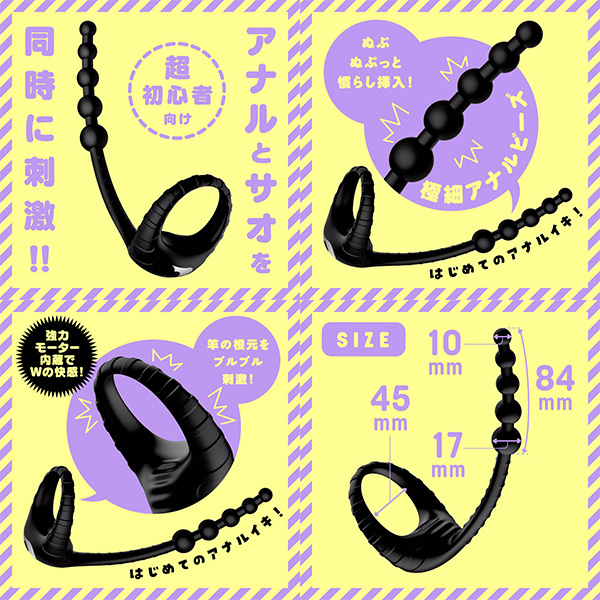 ★極細アナルビーズではじめてのアナルイキ!★PPPより超初心者にオススメなアナニーバイブが登場!高品質ソフトシリコン&ぬぷぬぷと慣らし挿入ができるアナルビーズ型で安心して挿入ができる!!さらにサオの根元をブルブル刺激するパワフルモーターを搭載!アナルとサオを同時に刺激してWの快感!!!★女の子みたいにイケるメス堕ち仕様の優秀バイブ!本体は充電式なのでエコに使用可能。※本体:充電時間約60分※本体:最大連続稼働時間約50分(初期振動パターン未変更時)_防水機能IPX6等級_10パターン振動_付属品:リモコン_充電用USBケーブル