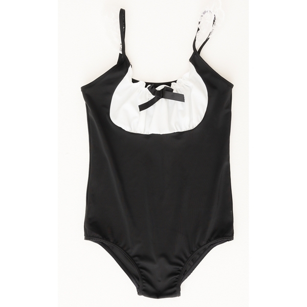 日本国内の工場で縫製された、伸縮性のある肌触りの良いマイクロファイバー生地を使ったメイドスタイルの水着。胸元の大きなリボンと締付けのないノンワイヤーでバストラインを自然で美しく魅せる、メイド風デザインの水着です。
