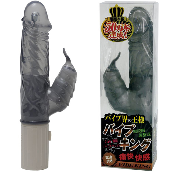販売本数50万本達成!その人気はまさにバイブ界の王様!バイブ選びに迷ったら、まずはこれ!性能・機能・大きさ・ボディデザイン・お値段の全てが満足できるハイクオリティのバイブレーター「バイブキング」!多くのリピーターに愛されて50万本の称号は伊達じゃありません!しっかりと力強いくねりスイングに強烈なバイブレーション。二枚舌でテンポよく刺激するフラッパー(子機)と、回転と振動が別々で操作できるスライドコントローラー。挿入可能長さ10cmに太さ3.5cmとなる小ぶりでスリムなジャパニーズサイズ。女性に受ける清潔感のあるクリアカラーにゴテゴテしないスッキリとしたボディデザイン。安心の純日本製。シンプルで使いやすく初めての人でもストレスなくお使いいただけるバイブレーターです。こちらは肉感の刺激が気持ち良いスタンダードなムク仕様となっております。カラー:スモーク